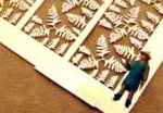 Farn mit feinen BlätternMehrfach gefiederte, feine Blätter sind schwer nachzubilden - aber mit geätztem Metall bekommt man eine sehr schöne Anmutung hin. Farn wächst an feuchten, schattigen Stellen wie Waldrändern und Lichtungen, Bach- und Flussläufen, in Schluchten und auch als Zierpflanze in Gärten. Farn. |