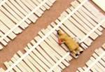 Lattenzaun mit maßstäblich dünnen BretternDie Holzverarbeitung im Maßstab 1 zu 160 ist ein Kapitel für sich. Ein Streichholz ist schon recht fummelig zu handhaben; es entspricht in der Dicke etwa 15 bis 20 Zentimeter dicken Balken. Das ist schon eine Menge Holz, die eigentlich nur für recht stabile Kostruktionen verwendet wird. Bretter sind meist nicht dicker als zwei Zentimeter, darüber fangen dann schon die teuren Dielenbretter an. Der hier gezeigte Zaun entspricht etwa einem 16 Millimeter dicken Brett und damit der durchschnittlichen Stärke von einfachem Bauholz. Lattenzaun. |